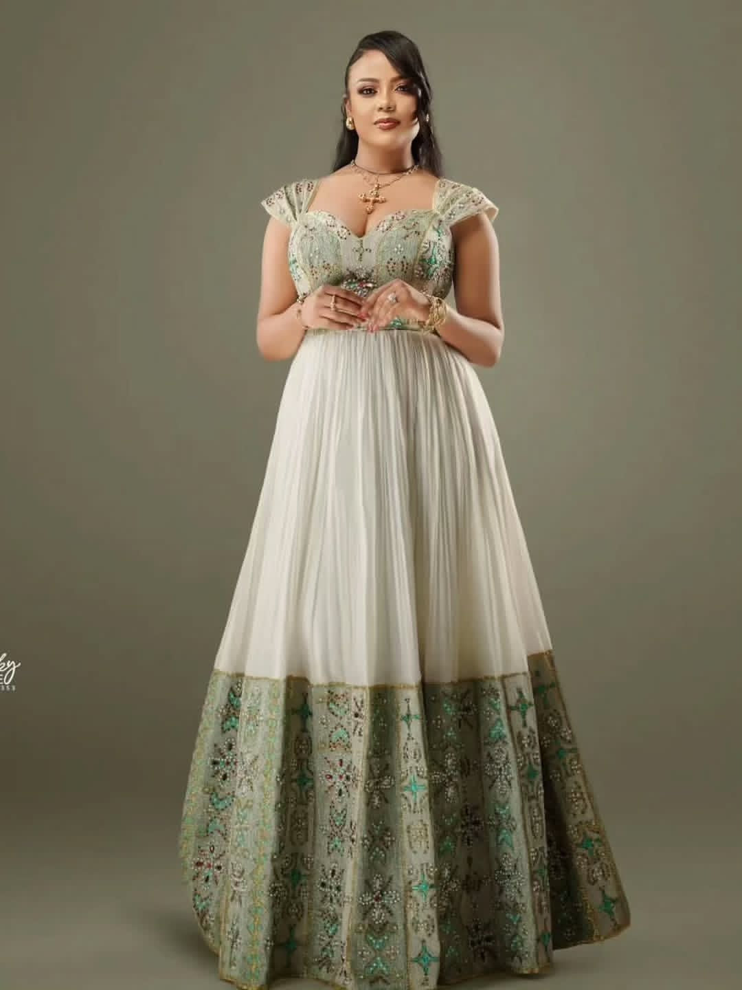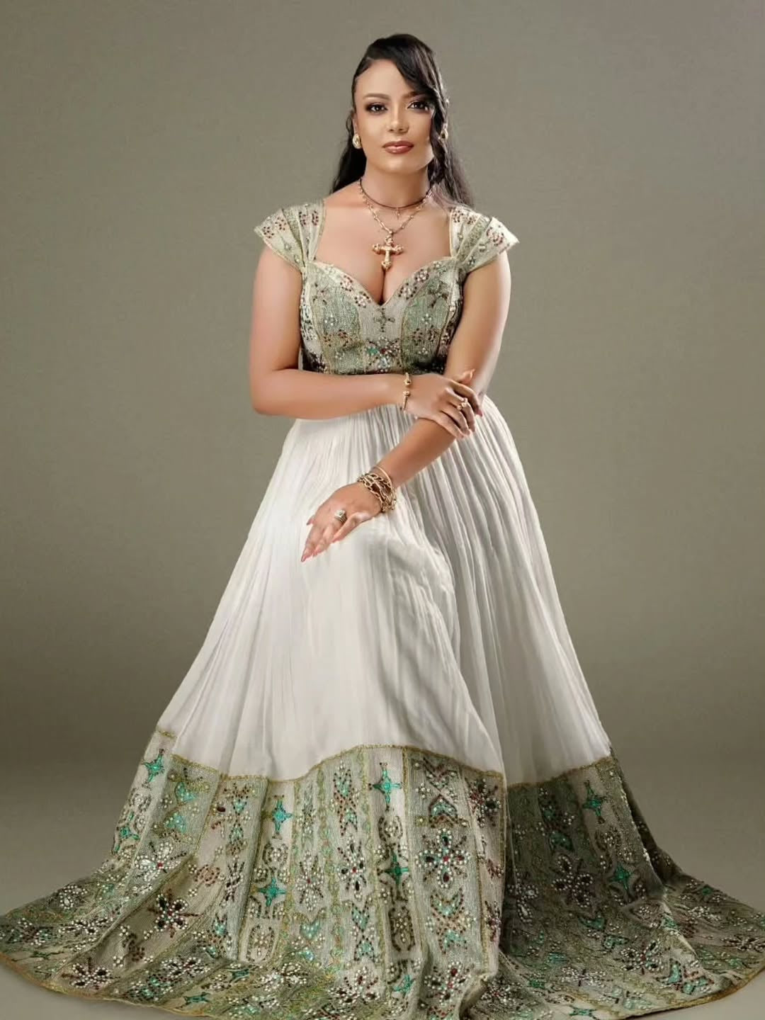 አረንጓዴ የኢትዮጵያ ልብስ | ለዳያስፖራ ሙሽሮች የሠርግ ሐበሻ ልብስ