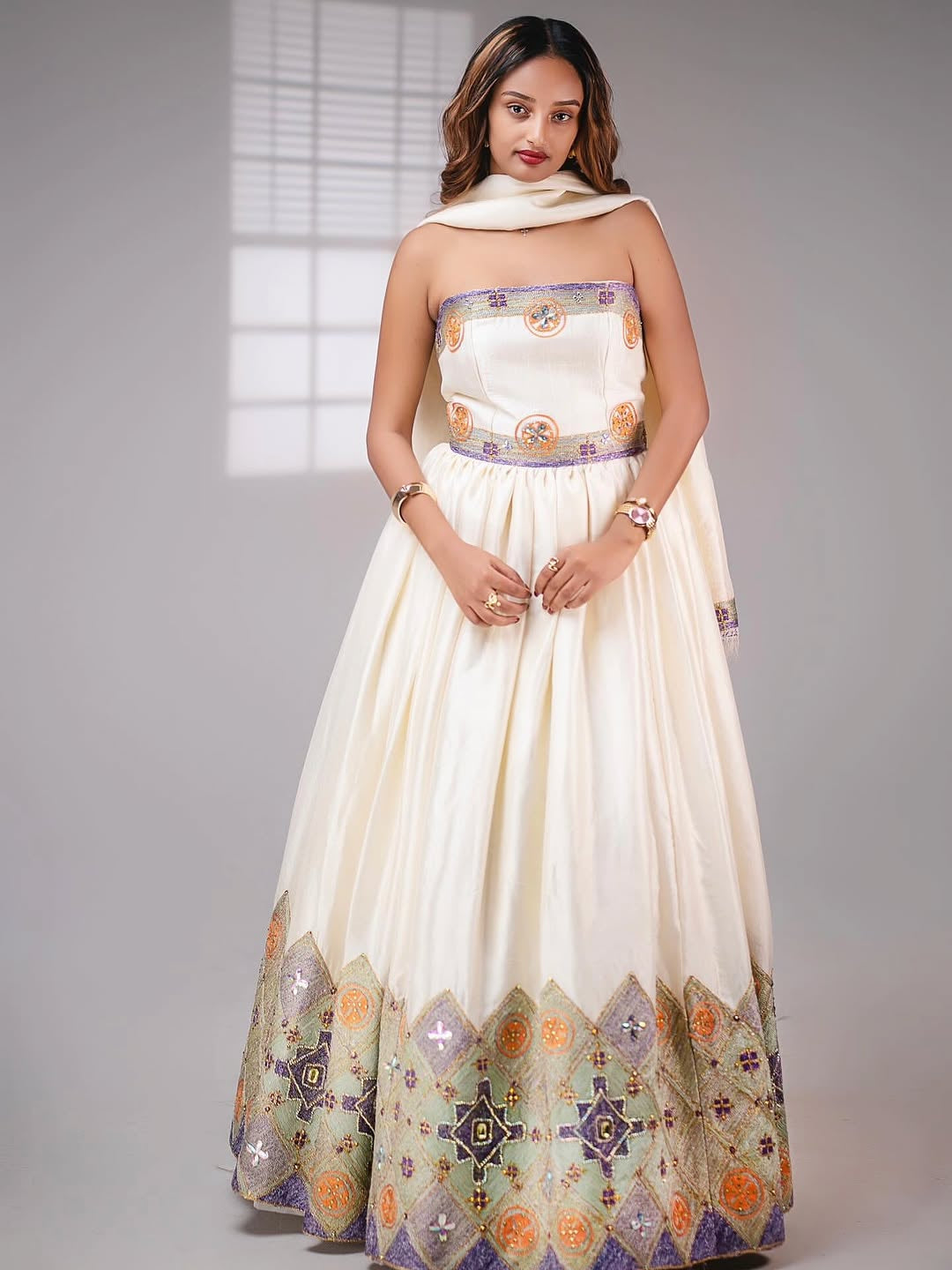 Luxury Cream Habesha Libs with multicolor Accents – Cultural & Holiday Outfit
